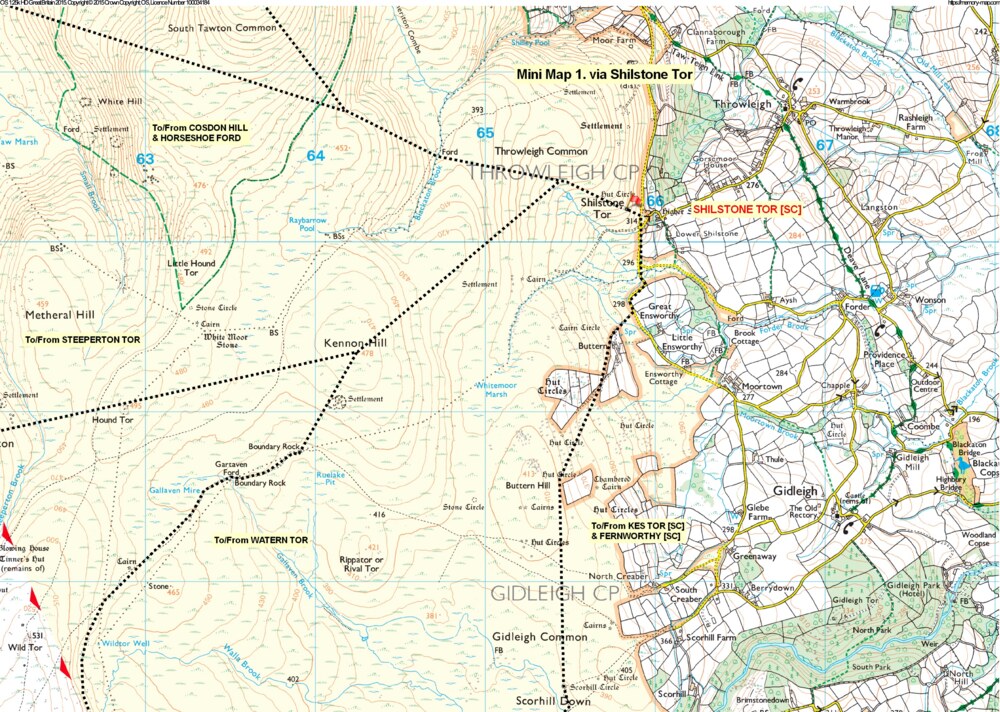 - Shilstone/Buttern – the road between Shilstone Tor [SC] and the Buttern Track should be used by teams on routes between Shilstone Tor and Kes Tor. Coming to and from Shilstone Tor from the WNW offers a drier option than the more direct routes. The suggested routes to and from the WNW, WSW, and SW are drier and link with the permitted river crossings where required.